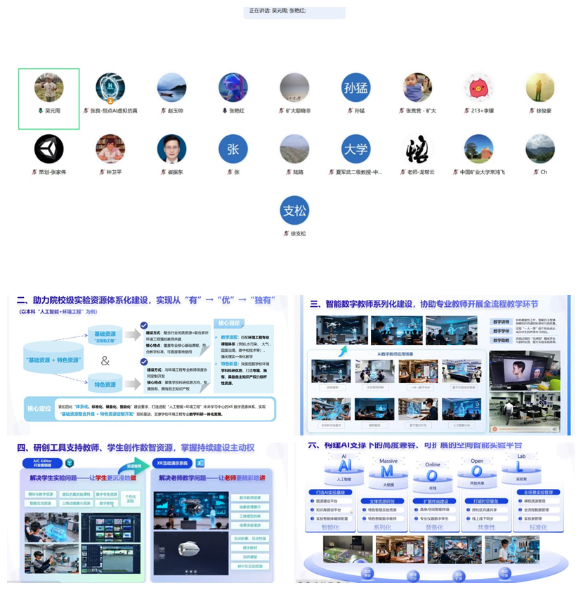 张营营围绕智能建造专业建设现状、实验教学需求、传统实验存在的问题,介绍了推进人工智能赋能实验教学的现实需求。南京恒点信息技术有限公司张良团队展示了其在虚拟仿真实训领域的技术积累,结合具体案例介绍了虚拟仿真教学平台建设经验以及在土木工程专业虚拟仿真课程的定制经验。