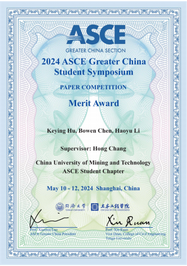 2024 年美国土木工程师学会(ASCE)大中华区学生论坛论文竞赛的优胜奖