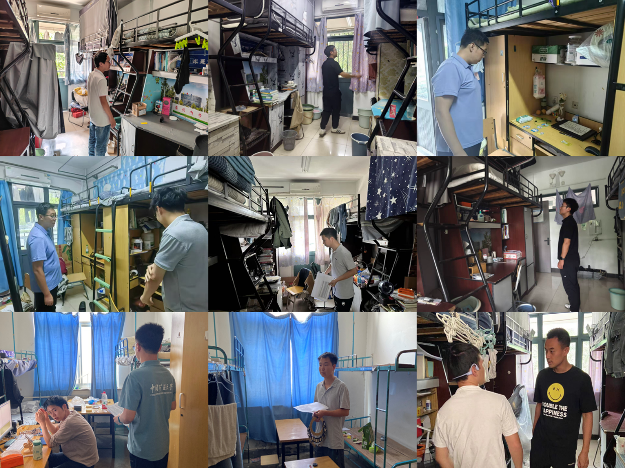 为切实加强学生宿舍安全管理,及时排查消除安全隐患,营造安全、稳定、和谐的暑期校园生活环境,7月13日至15日,学院深入学生宿舍开展安全卫生专项检查。本次检查工作覆盖全院研究生、本科生全部651间宿舍,涵盖文昌学7楼、学13楼等,南湖校区桃一、桃三、竹四等22栋宿舍楼。对于全部离校的学生宿舍确保断水断电、门窗紧闭并贴上封条;对于留校学生加强安全教育,特别强调了用电安全、夜间归寝管理及防暑降温等问题,提醒大家防火、防盗、防诈骗、防溺水,做好个人卫生和宿舍环境卫生,确保假期校园生活安全有序。