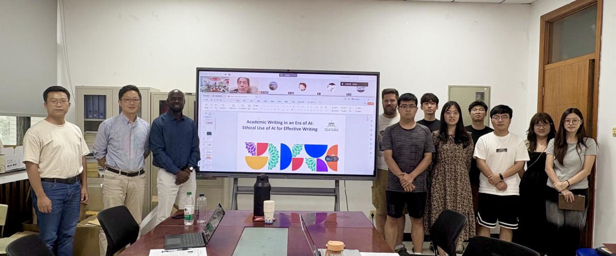 ,于学院楼A203会议室作《Academic Writing in an Era of Al: Ethical Use of AI for Effective Writing》的学术报告。矿业工程学院、计算机科学与技术学院以及学院工程管理系的教师与研究生踊跃参与现场聆听,同时,长安大学、重庆交通大学等高校的教师和同学也通过线上方式积极参与,报告由工程管理系主任乔亚宁主持。