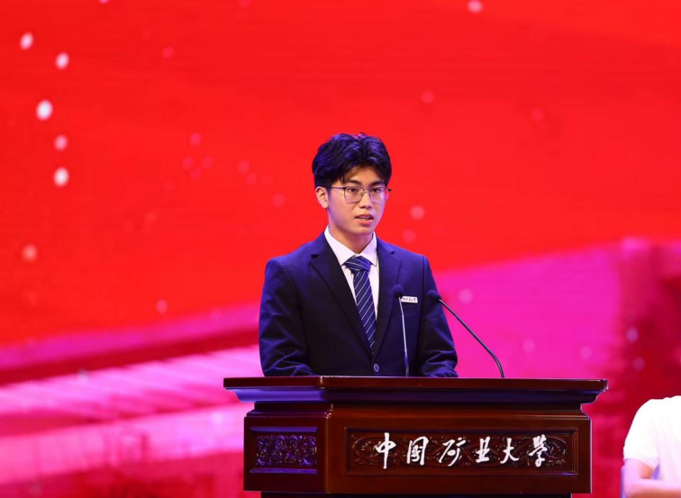 2023级本科生朱迅作为在校本科生代表发言。他分享了自己在矿大的成长历程,勉励新生勇于书写人生新篇章—— 在丰富的选择中大胆探索,在坚定理想信念中厚植家国情怀,在实践中锤炼本领。朱迅提到,自己曾通过追寻革命精神、感受大国工程魅力、参与国际文化交流拓宽视野,并特别强调钱七虎院士 “德才兼备、身心健康,成为强国栋梁” 的嘱托催人奋进。他呼吁新时代矿大学子秉承“自强不息、艰苦奋斗、追求卓越”的矿大精神,以清晰目标笃定前行,创造属于自己的人生奇迹。