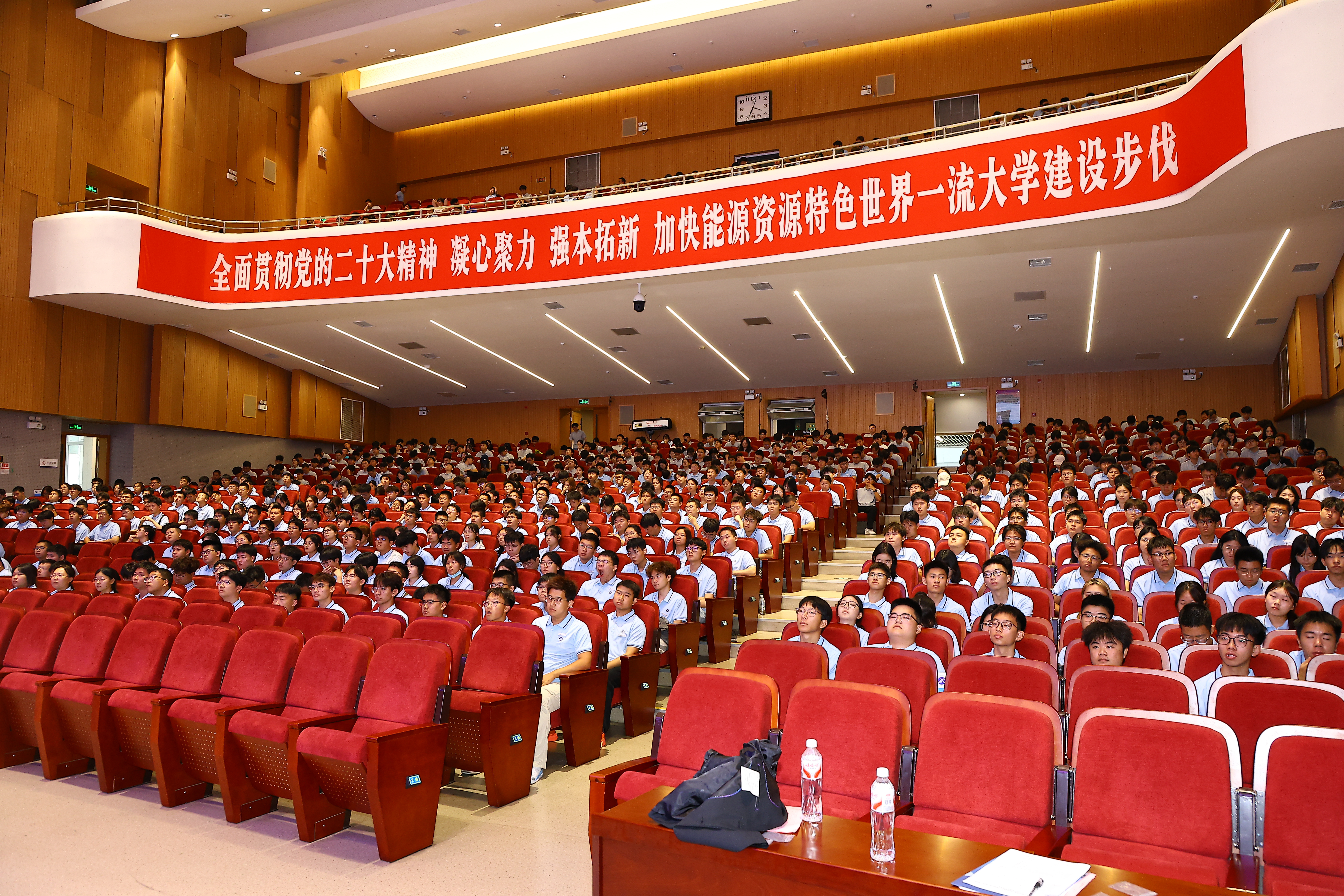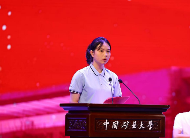 2025级新生冯思豫作为新生代表发言,她首先表达了对矿大的深切归属感。她介绍,自己祖籍河南,名字 “思豫” 与矿大前身 “焦作路矿学堂” 的历史渊源相呼应,且父亲曾在此求学,能续写与矿大的故事,既是荣光也是精神传承。冯思豫代表全体新生表态:将以矿大新成员的身份与学校共成长,牢记 “崇德尚学” 校训,以 “初生牛犊” 的闯劲开拓视野、丰富学识,以 “滴水穿石” 的韧劲专注学业、踏实前行,在矿大这片沃土上丰富自我、成就理想,让青春热烈绽放。