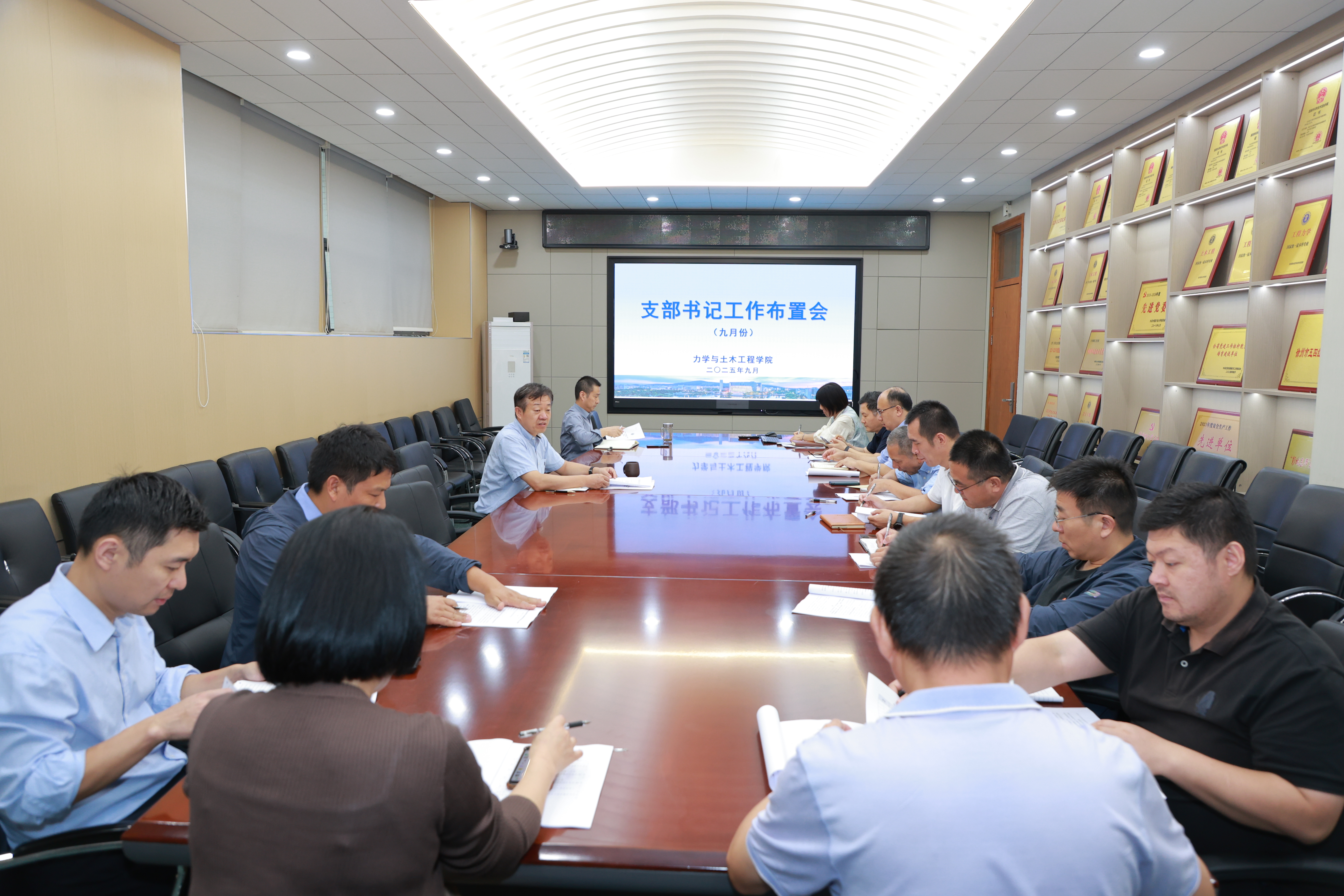 在A220会议室召开教职工支部书记例会暨集体学习会,安排布置学院近期党建与重点工作。院党委书记马占国主持会议,院党委委员及教职工党支部书记参加会议。
