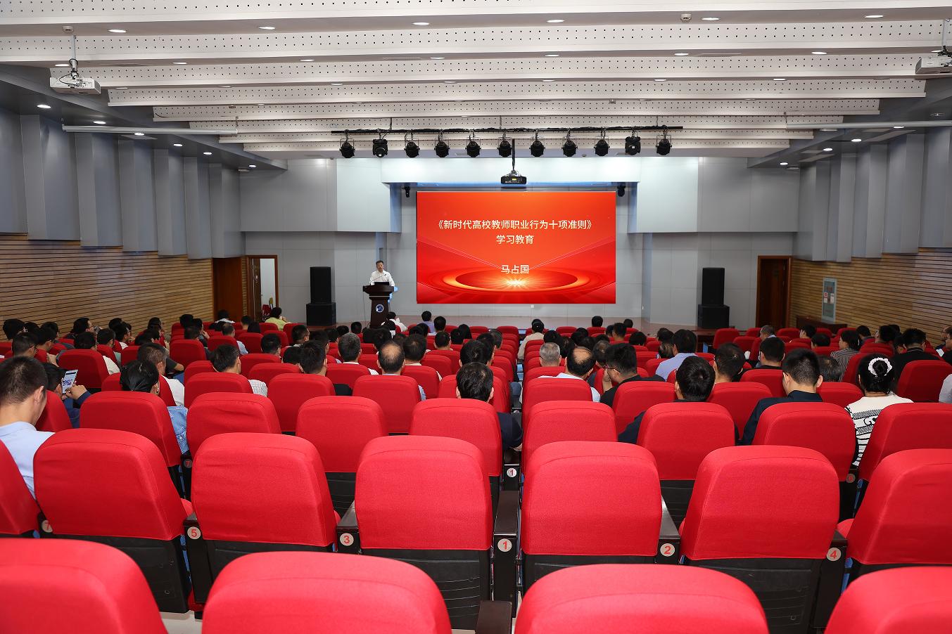 在A108报告厅召开秋季学期全体教职工大会,总结学院上半年工作,布置新学期重要工作。学院党政领导班子成员与全体教职员工参加会议。