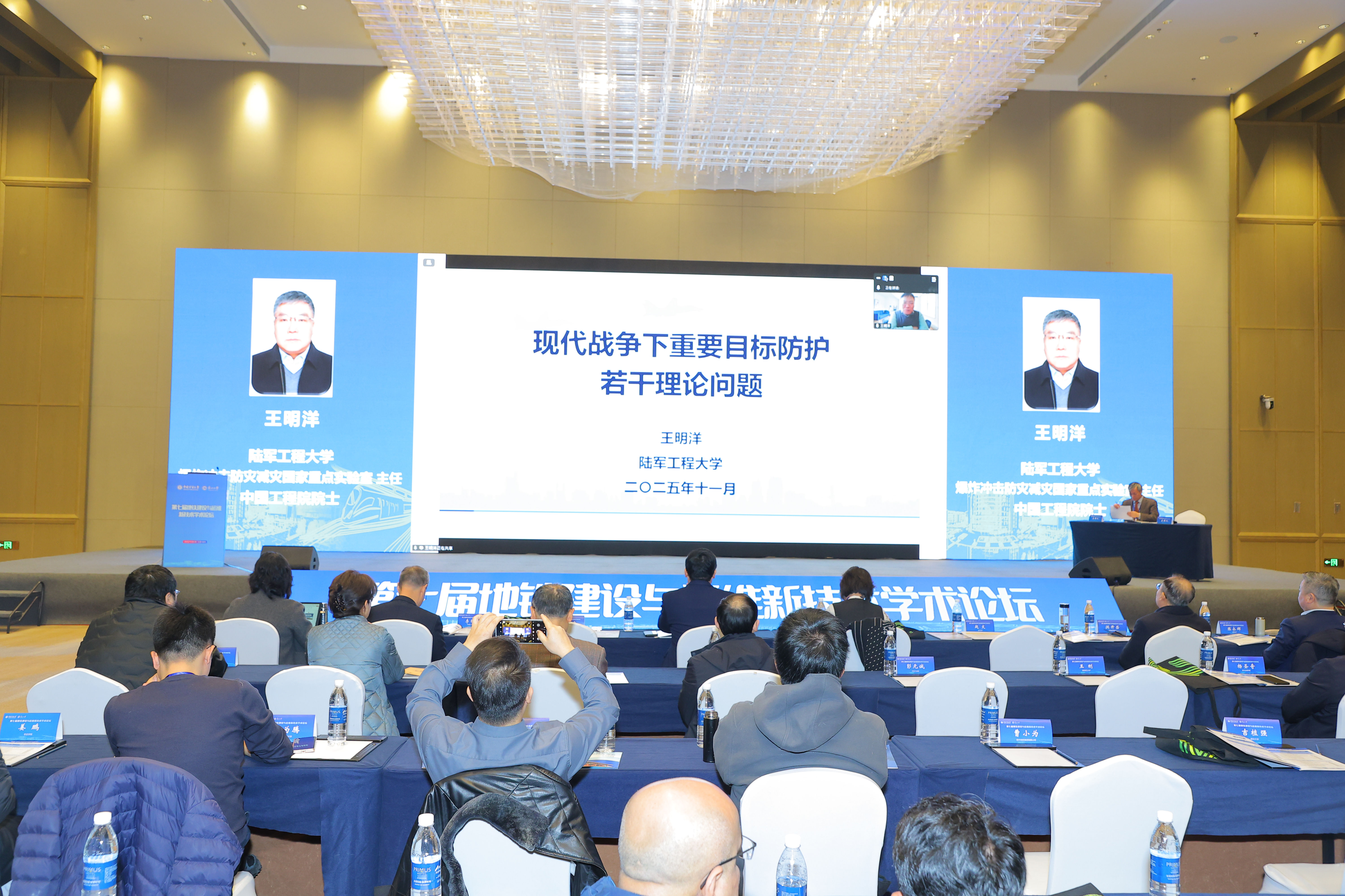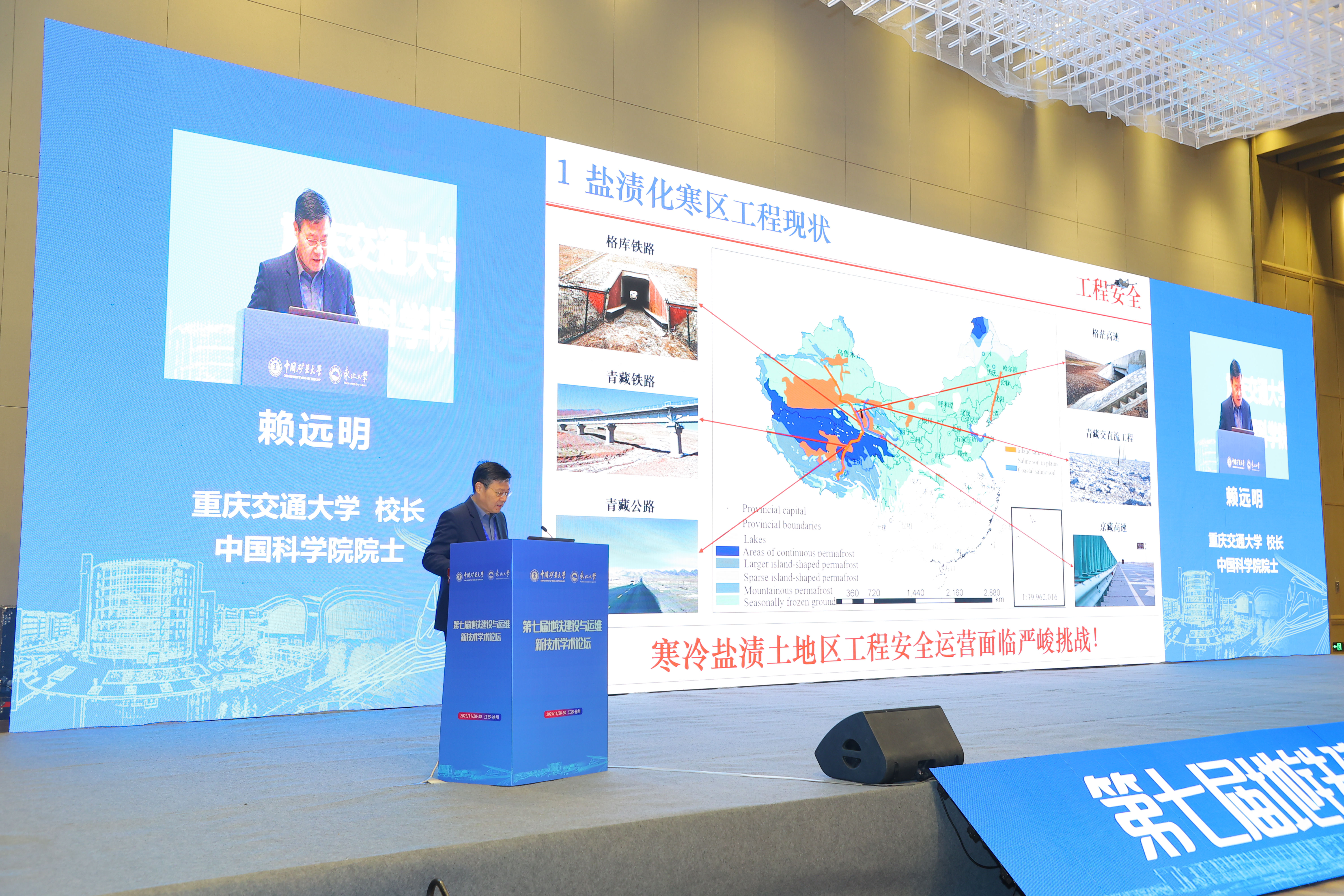 主旨报告环节精彩纷呈,两位院士带来了高屋建瓴的学术分享。中国科学院院士、重庆交通大学校长赖远明作了题为《盐渍化寒区工程理论与应用》的报告,深入阐述了特殊地质环境下的重大工程挑战与创新理论。中国工程院院士、国防工程学院爆炸冲击防灾减灾国家重点实验室主任王明洋以《现代战争攻防博弈下关键基础设施防护思考》为题,从国家战略安全角度,分析了地下工程防护的前沿课题。