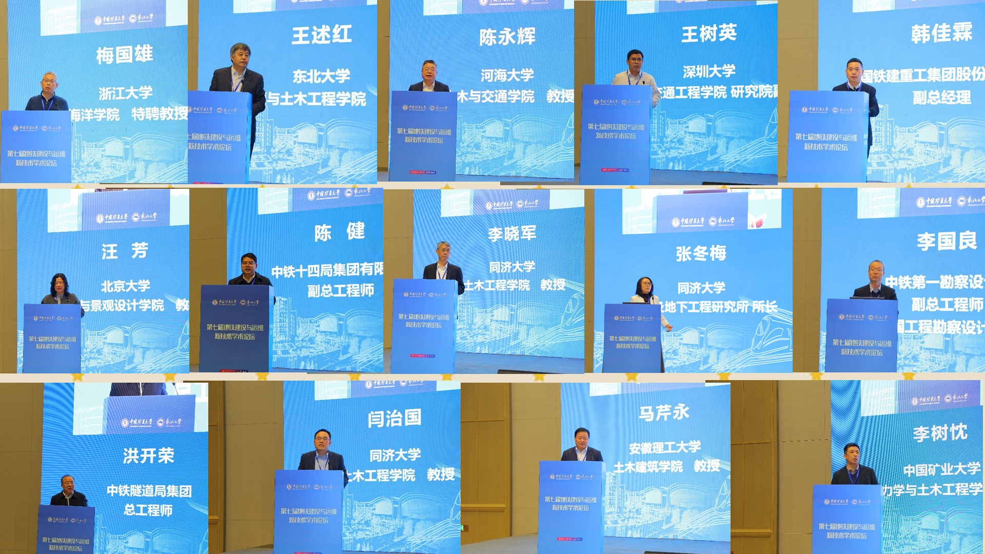 大会报告环节阵容强大,学术与实践交融。中国科学院武汉岩土力学研究所陈卫忠研究员、全国工程勘察设计大师李国良、中铁隧道局集团总工程师洪开荣,以及来自北京大学、浙江大学、同济大学、河海大学、西南交通大学、郑州大学、安徽理工大学、山东大学、深圳大学、东北大学等高校的知名学者,和中铁十四局、中国铁建重工等企业的技术负责人共计20余位报告人相继发言。报告内容紧密围绕“盾构/TBM隧道设计与精细化施工”、“隧道智慧运维”、“城市地下精细化冻结”“灾害防治与工程韧性提升”等核心议题,分享了一系列新技术、新思想与新探索,全面展示了我国在地铁建造与运维领域的最新科研成就与工程实践水平。