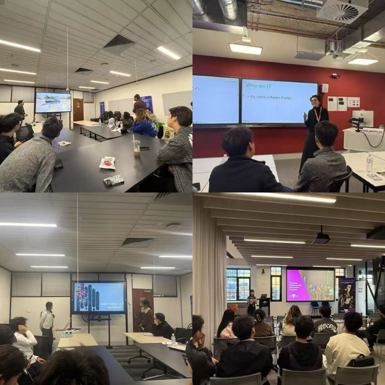 7 月 28 日,访学活动正式拉开帷幕。上午 10 点,RMIT (皇家墨尔本理工大学)为学子们举办了简洁而热烈的欢迎仪式,地点位于 8.8.13 教室,师生们的热情让初到异国的学子倍感温暖。随后,在教室集合后,学子们开启了校园探索之旅 —— 从学生咨询处(Student Connect)的服务功能,到图书馆的学术资源布局;从职业规划区(Job Shop)的就业支持,到学校餐饮的文化特色;从动画实验室的技术设备,到苹果基金会项目的创新理念,再到 80 号教学楼的建筑设计,每一处参访都让学子们对 RMIT 的校园生态有了更立体的认知。中午,RMIT 为学子们准备了特色午餐,在轻松的氛围中,大家交流着上午的见闻与感受。下午 2 点,“学生生活与职业发展讲座” 如期举行,内容围绕俱乐部与学生社团资源、职业发展支持服务、线上职业工具使用、兼职寻找技巧及澳大利亚简历制作要点展开。傍晚,学子们前往墨尔本留学中心(Study Melbourne Hub)参观,进一步了解当地留学支持体系,为适应海外生活补充 “攻略”。